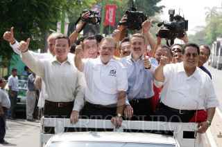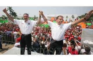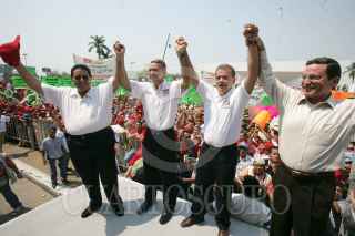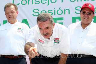 VILLAHERMOSA, TABASCO 30ABRIL2006.- El candidato de la Alianza por México PRI-PVEM. Roberto Madrazo de gira por esa entidad, asistió a la toma de protesta de Andrés Granier como candidato por esa coalicion al gobierno del estado. acompañados también por el Presidente nacional del PRI. Mariano Palacios Alcoser FOTO: Marco Polo Guzmán/CUARTOSCURO.COM