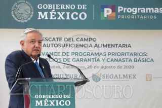 ZACATECAS, ZACATECAS, 20AGOSTO2020.- Andrés Manuel López Obrador, Presidente de México, presidIó el "Rescate del campo y autosuficiencia alimentaria. Avance en Programas Prioritarios: Precios de Garantía y Canasta Básica". Lo acompañaron Alejandro Tello Cristerna, Gobernador del Estado de Zacatecas; Miguel García Winder, Subsecretario de Agricultura; Ignacio Ovalle Fernández, Director General de Seguridad Alimentaria Mexicana (SEGALMEX); Miguel Carrillo – Villareal, Director de Planeación de Garantía y Estímulos y Ulises Mejía Haro, Presidente Municipal de Zacatecas, Zacatecas. FOTO: PRESIDENCIA/CUARTOSCURO.COM