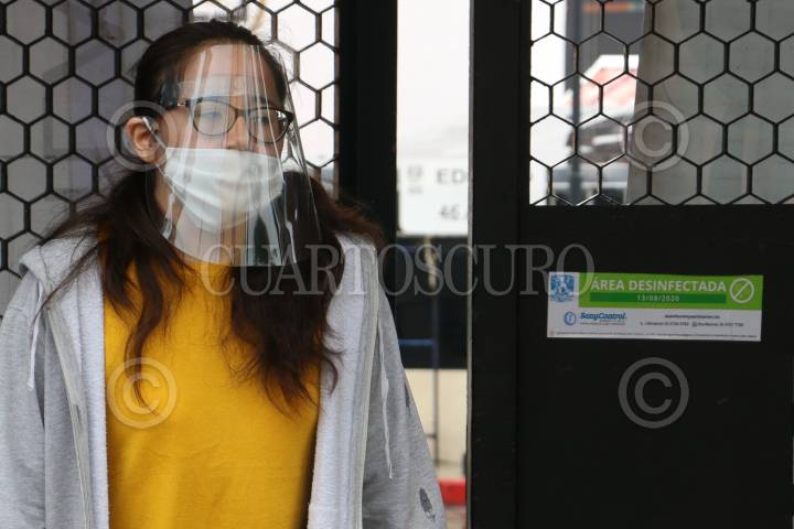 CIUDAD DE MÉXICO, 20AGOSTO2020.- Esta mañana se dio continuación a la segunda etapa de la jornada de aplicación de exámenes de nivel licenciatura para aspirantes de ingreso a la Universidad Autónoma de México (UNAM), dicho examen será aplicado a nivel nacional en distintas fechas a un estimado de 84 mil 947 aspirantes, aplicando las medidas sanitarias en todas las sedes debido a la contingencia por COVID-9. FOTO: ROGELIO MORALES /CUARTOSCURO. COM