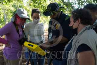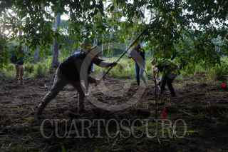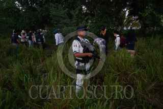 COAHUAYANA, MICHOACÁN, 20AGOSTO2020. En el primer día de búsqueda por la sierra-costa de Michoacán, se ubicó una fosa clandestina en la que se localizó una falange, hueso de una mano, motivo por el que la exploración quedó totalmente en manos de la Fiscalía General del Estado de Michoacán y de su Comisión de Búsqueda de Desaparecidos, quienes reservaron la información de hallazgos hasta terminar la investigación. La búsqueda está realizándose en un predio de la costa de Coahuayana, donde están presentes las autoridades por conducto de la propia Comisión Nacional de Búsqueda de Personas Desaparecidas, la Fiscalía General de la República, la Fiscalía General del Estado de Michoacán, la Guardia Nacional, la Secretaría de la Defensa Nacional, la Policía Michoacán, la Policía Michoacán Ambiental y otras corporaciones de seguridad, así como colectivos civiles que apoyan a familiares a localizar a desaparecidos. FOTO: JUAN JOSÉ ESTRADA SERAFÍN/CUARTOSCURO.COM