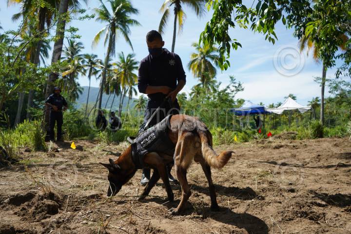 COAHUAYANA, MICHOACÁN, 20AGOSTO2020. En el primer día de búsqueda por la sierra-costa de Michoacán, se ubicó una fosa clandestina en la que se localizó una falange, hueso de una mano, motivo por el que la exploración quedó totalmente en manos de la Fiscalía General del Estado de Michoacán y de su Comisión de Búsqueda de Desaparecidos, quienes reservaron la información de hallazgos hasta terminar la investigación. La búsqueda está realizándose en un predio de la costa de Coahuayana, donde están presentes las autoridades por conducto de la propia Comisión Nacional de Búsqueda de Personas Desaparecidas, la Fiscalía General de la República, la Fiscalía General del Estado de Michoacán, la Guardia Nacional, la Secretaría de la Defensa Nacional, la Policía Michoacán, la Policía Michoacán Ambiental y otras corporaciones de seguridad, así como colectivos civiles que apoyan a familiares a localizar a desaparecidos. FOTO: JUAN JOSÉ ESTRADA SERAFÍN/CUARTOSCURO.COM