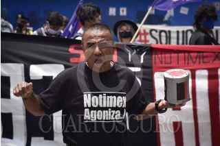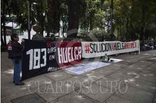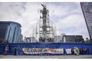 CIUDAD DE MÉXICO, 21AGOSTO2020.- Trabajadores e integrantes del Sindicato Único de Trabajadores (SUT) Notimex se manifestaron en la glorieta del Ángel de la Independencia a seis meses de la huelga que inició por la demanda de los trabajadores huelguistas en contra de los despidos por parte de la administración de Sanjuana Martínez. FOTO: MARIO JASSO /CUARTOSCURO.COM