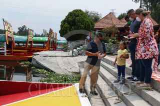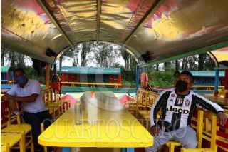 CIUDAD DE MÉXICO, 21AGOSTO2020.- Tras más de 5 meses de paro obligado debido a la emergencia sanitaria por COVID-19, este viernes el Embarcaderos de Xochimilco reanudaron actividades, aplicando medidas protocolarias como uso obligatorio de cubrebocas, aplicación de gel antivacterial y sanitizacion de manera periódica, en trajíneras. FOTO: ROGELIO MORALES /CUARTOSCURO. COM