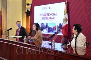 CIUDAD DE MÉXICO, 21AGOSTO2020.- Conferencia de prensa-informe diario sobre programas de Bienestar en el salón Tesorería de Palacio Nacional. La presiden Esteban Moctezuma Barragán, secretario de Educación Pública; Luisa María Alcalde Luján, secretaria del Trabajo y Previsión Social y Raquel Sosa Elízaga, directora general del Organismo Coordinador de las Universidades para el Bienestar ‘Benito Juárez García'. Foto: PRESIDENCIA /CUARTOSCURO.COM