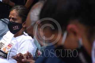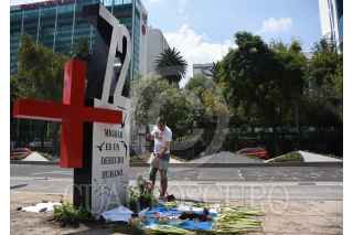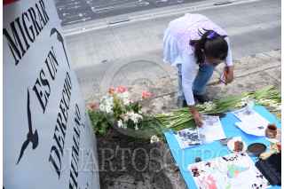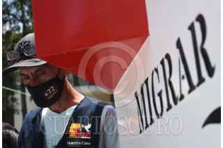 CIUDAD DE MÉXICO, 22AGOSTO2020.- Un grupo de manifestantes en apoyo a los migrantes colocaron un antimonumento frente a la Embajada de Estados Unidos que se encuentra sobre Paseo de la Reforma, el grupo de personas, denominado +72, exigen justicia a 10 años de la matanza de 72 migrantes en el municipio de San Fernando en el estado de Tamaulipas. FOTO: DANIEL AUGUSTO/CUARTOSCURO.COM