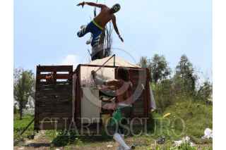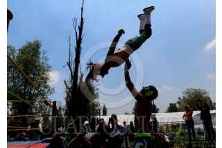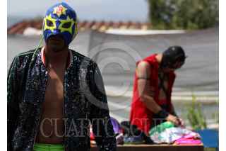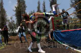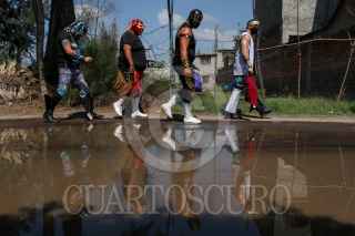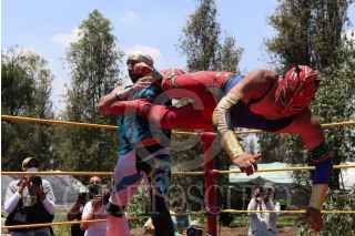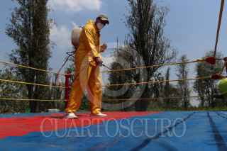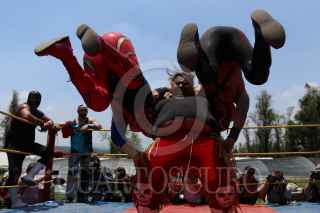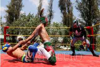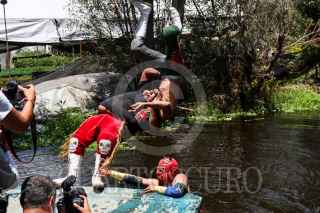 CIUDAD DE MÉXICO, 22AGOSTO2020.- En medio de uno de los canales del pueblo de Caltongo, Xochimilco, la familia Olivares, experta en lucha libre desde hace siete generaciones, ha montado el ring donde llevan acabo las funciones de “Chinampa Luchas”, la nueva modalidad que se crearon a raíz de la pandemia por Covid-19. Entre lanzas, planchas y llaves, los gladiadores, originarios de la alcaldía Xochimilco, se retan para mantener viva la llama del deporte durante los tiempos de pandemia. Foto: GALO CAÑAS /CUARTOSCURO.COM