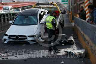 CIUDAD DE MÉXICO, 22AGOSTO2020.- Un hombre que viajaba en estado de ebriedad se estrelló contra la valla del puente vehicular de la autopista México-Pachuca y Río de los Remedios, en la colonia CTM, de la alcaldía de Gustavo A Madero. FOTO: ARMANDO MONROY /CUARTOSCURO.COM