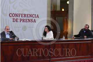 CIUDAD DE MÉXICO, 22AGOSTO2020.- Conferencia del Bienestar encabezada por la titular de la Secretaría de Trabajo y Previsión Social (STPS), Luisa María Alcalde, que estuvo acompañada por Emiliano Calderón, coordinador de la Estrategia Digital Nacional y por Raymundo Artis Espriú, director general de CFE telecomunicaciones e Internet para Todos. FOTO: DANIEL AUGUSTO/CUARTOSCURO.COM