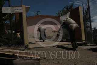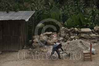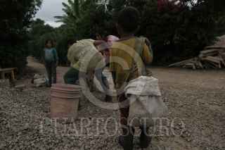 ALDAMA,CHIAPAS, 24AGOSTO2020.- En el primer día de clases los niños de las comunidades de Aldama, en lugar de sentarse frente al televisor para tomar clases de acuerdo a las nuevas políticas educativas dentro de la pandemia por COVID 19, ayudan a sus padres con el trabajo. Los menores que integran algunas de las familias que recibieron el apoyo del gobierno con materiales para construcción de casas, trabajan de 7 de la mañana a 4 de la tarde con sus padres transportando grava de la calle hasta el lugar donde construirán su casa. Los niños desde 5 años y hasta 14, colaboran con los trabajos pesados que realizan sus padres diariamente desde temprano debido al cierre de escuelas en el país por la contingencia, no continuarán con las clases en la nueva normalidad, ya que esta no está diseñada para las comunidades más alejadas del país, donde no se cuenta con señal de internet o de televisoras. FOTO: ISABEL MATEOS /CUARTOSCURO.COM