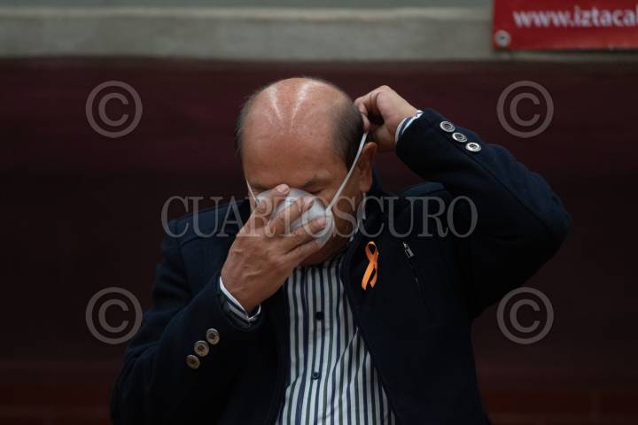 CIUDAD DE MÉXICO, 25AGOSTO2020.- Alejandro Valle, presidente de la Liga Inter Semanal de Fútbol Rápido Coyuya AC; Armando Quintero, alcalde Iztacalco, y Rodrigo Dosal Ulloa, director del Instituto del Deporte de la Ciudad de México, durante la firma de colaboración entre la alcaldía y las ligas deportivas amateurs para que puedan regresar a la actividad siguiendo los protocolos sanitarios que indica el semáforo naranja de la pandemia de Covid-19. FOTO: MOISÉS PABLO/CUARTOSCURO.COM