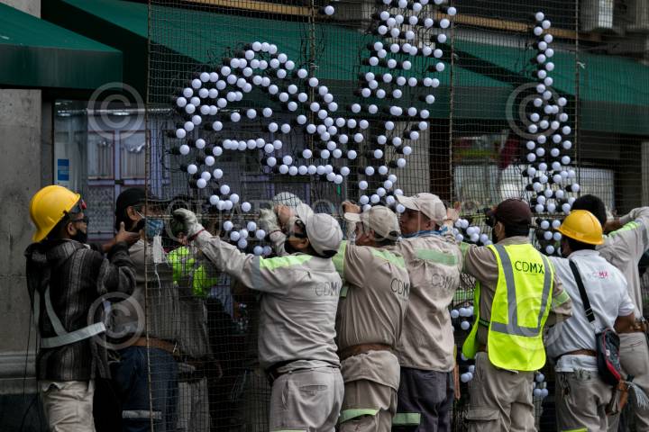 CIUDAD DE MÉXICO, 25AGOSTO2020.- Continúa la instalación de luminarias con la silueta de personajes históricos de la Independencia de México, de cara a la celebración del 210 adversario de su inicio. Este año debido a la pandemia por Covid-19 la celebración será sólo con 500 personas en la plancha del Zócalo portando una antorcha, según lo declarado por el presidente Andrés Manuel López Obrador. FOTO: GALO CAÑAS /CUARTOSCURO.COM