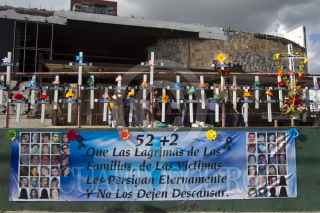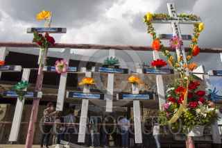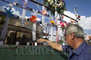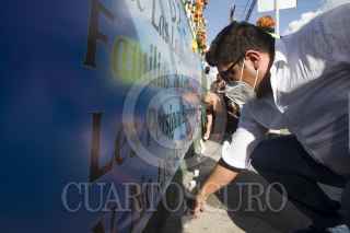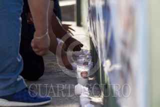 MONTERREY, NUEVO LEÓN, 25AGOSTO2020.- Familiares de las víctimas del atentado del Casino Royale, acudieron a las afueras del lugar para encender velas y orar, a nueve años de los hechos donde murieron 52 personas, incluyendo a dos mujeres embarazadas. FOTO: GABRIELA PÉREZ MONTIEL / CUARTOSCURO.COM