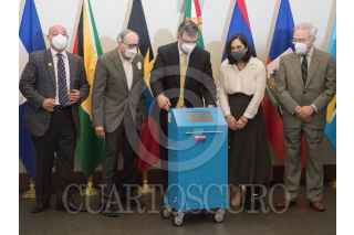 CIUDAD DE MÉXICO, 26AGOSTO2020.- El Canciller Mexicano, Marcelo Ebrard, encabezó la presentación de los dispositivos médicos para ventilación mecánica fabricados en México, evento que se realizó en la Secretaría de Relaciones Exteriores. Asistieron Maximiliano Reyes, Laura Elena Carrillo y David Kershenobich Stalnikowitz, entre otros. FOTO: VICTORIA VALTIERRA/CUARTOSCURO.COM