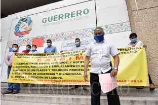 CHILPANCINGO, GUERRERO, 26AGOSTO2020.- Acompañados por el diputado federal Morenista Rubén Cayetano García, un grupo de abogados laboristas se manifestaron frente al edificio de gobierno “Vicente Guerrero” de la ciudad de Chilpancingo, para exigir que se reactiven las actividades en el Tribunal de Conciliación y Arbitraje, mismas que se encuentran suspendidas desde hace más de cinco meses por la pandemia de Covid-19. Los abogados acusaron que debido a este cierre de actividades se ha dejado en desatención más de 27 mil juicios, a los que no se les ha dado el trámite correspondiente, y con ello se ha negado el acceso al a justicia a quienes reclaman actos patronales indebidos. Carlos Marxs Barbosa, detalló que con la negación de la apertura de las juntas locales y la de conciliación y arbitraje, “se está violentando un derecho humano en el acceso a la justicia, la cual no debe ser negociable”, precisó. Destacó la incongruencia del gobierno del estado al permitir la apertura de lugares que no son esenciales, tales como albercas, bares, cines y teatros, y que además no cuentan con las medidas sanitarias indicadas por la Secretaría de Salud. Recalcó que otras instancias del sistema de procuración de justicia se encuentran laborando de forma eficiente sólo tomando las medidas de prevención que se recomiendan por las instancias de salud. FOTO: DASSAEV TÉLLEZ ADAME/CUARTOSCURO.COM