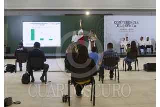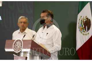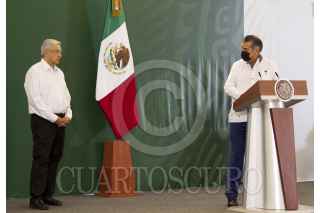 APODACA, NUEVO LEÓN, 27AGOSTO2020.- El presidente Andrés Manuel López Obrador, acudió a la Séptima Zona Militar, donde sostuvo la rueda de prensa matutina acompañado del gobernador de Nuevo León; Jaime Rodríguez Calderón y del Secretario de la Defensa Nacional; Luis Cresencio Sandoval, quien expuso estadísticas de la violencia en la entidad. FOTO: GABRIELA PÉREZ MONTIEL / CUARTOSCURO.COM