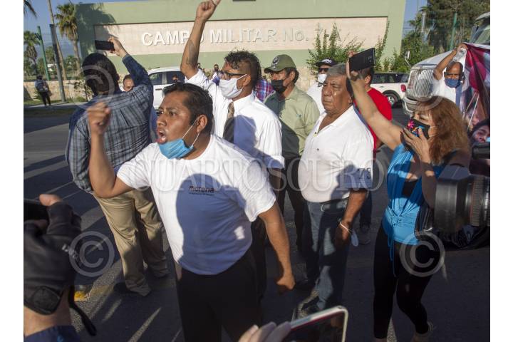 APODACA, NUEVO LEÓN, 27AGOSTO2020.- Diversos grupos opositores y a favor del gobierno de Andrés Manuel López Obrador se manifestaron en las afueras de la Séptima Zona Militar, donde el presidente sostuvo la conferencia de prensa matutina. FOTO: GABRIELA PÉREZ MONTIEL / CUARTOSCURO.COM