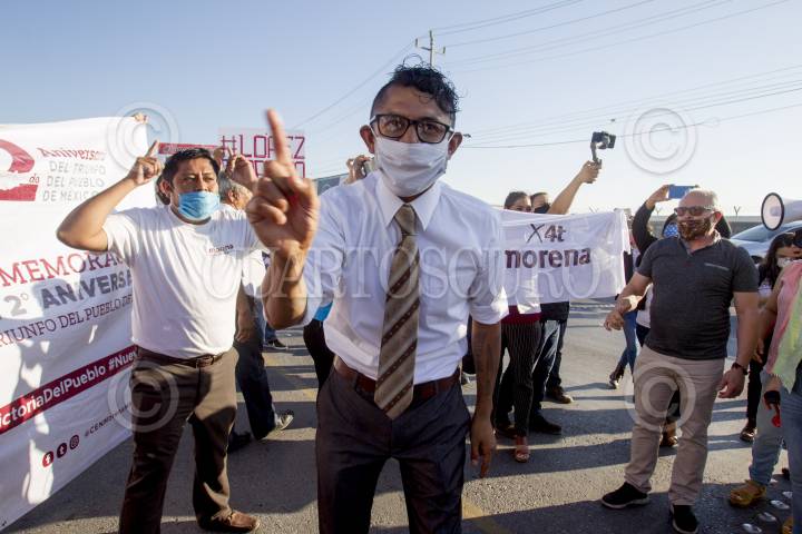 APODACA, NUEVO LEÓN, 27AGOSTO2020.- Diversos grupos opositores y a favor del gobierno de Andrés Manuel López Obrador se manifestaron en las afueras de la Séptima Zona Militar, donde el presidente sostuvo la conferencia de prensa matutina. FOTO: GABRIELA PÉREZ MONTIEL / CUARTOSCURO.COM