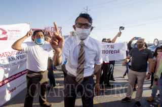 APODACA, NUEVO LEÓN, 27AGOSTO2020.- Diversos grupos opositores y a favor del gobierno de Andrés Manuel López Obrador se manifestaron en las afueras de la Séptima Zona Militar, donde el presidente sostuvo la conferencia de prensa matutina. FOTO: GABRIELA PÉREZ MONTIEL / CUARTOSCURO.COM