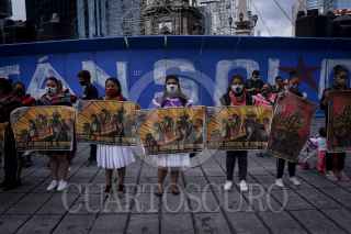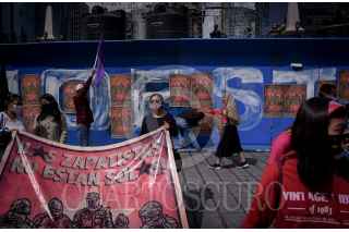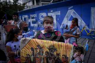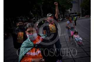 CIUDAD DE MÉXICO, 27AGOSTO2020.- Colectivos, organzaciones, y ciudadanos de a pie, se manifestaron dando vueltas a la glorieta del Ángel de la independencia, en apoyo a las comunidades zapatistas, y en contra del hostigamiento que, aseguran, estas sufren a manos de grupos paramilitares. FOTO: PEDRO ANZA /CUARTOSCURO.COM