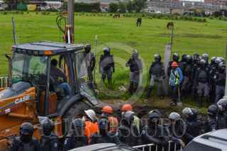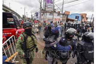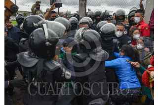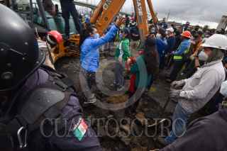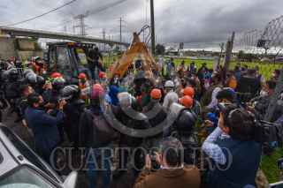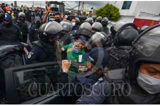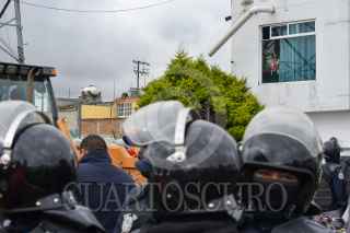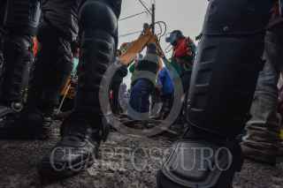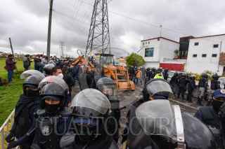 TOLUCA, ESTADO DE MÉXICO, 27AGOSTO2020.- Se registra enfrentamiento entre vecinos de la colonia Unidad Victoria y granaderos del ayuntamiento de Toluca, al oponerse a la demolición del parque de zona para la realización de obras relacionadas con CFE, en semanas previas se habían entablado mesas de diálogo y este día a temprana hora llegó la fuerza pública para iniciar dichas obras rompiendo el diálogo; estuvieron presentes también elementos de la Guardia Nacional y PC del municipio. En el lugar fueron detenidas dos mujeres por obstruir la realización de la obra, y permanece resguardado por los policías municipales. FOTO: CRISANTA ESPINOSA AGUILAR /CUARTOSCURO.COM