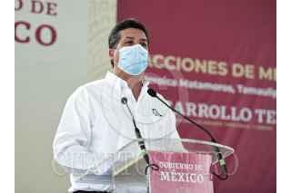 MATAMOROS, TAMAULIPAS, 27AGOSTO2020.- Andrés Manuel López Obrador, presidente de México, encabezó el recorrido por los trabajos de Mejoramiento Urbano en Matamoros. El mandatario fue acompañado por Jesús Ramírez Cuevas, Coordinador General de Comunicación Social y Vocero del Gobierno de México; Francisco García Cabeza de Vaca, Gobernador de Tamaulipas; Román Meyer Falcón, Secretario de Desarrollo Agrario Territorial y Urbano y Mario Alberto López Hernández, presidente municipal de Matamoros, Tamaulipas. Foto: PRESIDENCIA /CUARTOSCURO.COM