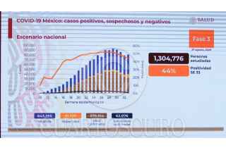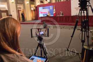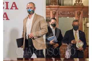 CIUDAD DE MÉXICO, 27AGOSTO2020.- Hugo López Gatell, subsecretario de promoción de la salud; acompañado esta noche por los médicos José Luis Alomía y Juan Rivera Dommarco, en la conferencia Informe del Covid 19, en el salón tesorería de Palacio Nacional. FOTO: VICTORIA VALTIERRA/CUARTOSCURO.COM