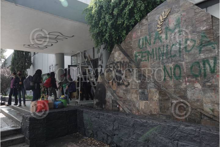 CIUDAD DE MÉXICO, 28AGOSTO2020.- Las alumnas de la Facultad de Economía de la UNAM -Mujeres Organizadas de la Facultad de Economía (MOFE)- entregaron las instalaciones luego de mantener plantón durante 182 días tras llegar a un cumplimiento de 27 de los 32 puntos para garantizar a todas las alumnas una vida estudiantil libre de acoso. El director, Eduardo Vega, realizó recorrido para corroborar que las instalaciones se encontrarán óptimas, agradeciendo al final a las alumnas la decisión de dejar la facultad. Actualmente ya no se encuentra ninguna instalación de la UNAM en plantón. FOTO: ANDREA MURCIA/CUARTOSCURO.COM