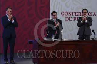 CIUDAD DE MÉXICO, 28AGOSTO2020.- Conferencia de prensa sobre los apoyos económicos que ofrecen las dependencias del gobierno federal para ayudar a las empresas y personas que se han visto afectadas por la crisis derivada de la pandemia de Covid-19 en el país, el evento estuvo encabezado por el director del Issste, Luis Antonio Ramírez Pineda, el vocal ejecutivo de Pensióissste, Iván Pliego Moreno y Luis Godoy Rueda, director de la Unidad de Inteligencia Económica Global de la Secretaría de Economía. FOTO: DANIEL AUGUSTO/CUARTOSCURO.COM
