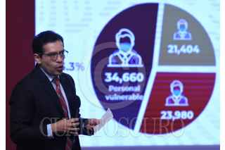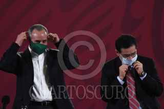 CIUDAD DE MÉXICO, 28AGOSTO2020.- Informe sobre el avance del virus Covid-19 en el país ofrecido por el Dr. Hugo López Gatell, subsecretario de Salud y que estuvo acompañado por el titular del ISSSTE, Luis Antonio Ramírez Pineda y el director general del IMSS, Zoé Robledo, además de la participación del Dr. Ricardo Cortés, director de promoción de la salud. FOTO: DANIEL AUGUSTO/CUARTOSCURO.COM