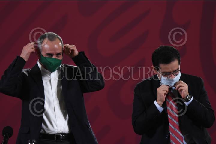 CIUDAD DE MÉXICO, 28AGOSTO2020.- Informe sobre el avance del virus Covid-19 en el país ofrecido por el Dr. Hugo López Gatell, subsecretario de Salud y que estuvo acompañado por el titular del ISSSTE, Luis Antonio Ramírez Pineda y el director general del IMSS, Zoé Robledo, además de la participación del Dr. Ricardo Cortés, director de promoción de la salud. FOTO: DANIEL AUGUSTO/CUARTOSCURO.COM