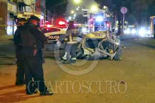 Ciudad De México, 29 agosto 2020. Un hombre pierde la vida y cinco personas más resultan lesionadas, al volcar el auto Chevy en que viajaban sobre calzada Zaragoza a la altura de Guelatao en la colonia Juan Escutia, en alcaldía de Iztapalapa. Foto: Luis Carbayo/cuartoscuro.com