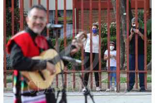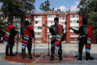 CIUDAD DE MÉXICO, 29AGOSTO2020.- Por segundo día consecutivo se llevó acabo el concierto "Abrazo a la Distancia", el cual contó con el grupo "Hermanos García”, esto en la Unidad Habitacional Narciso Mendoza en la alcaldía Tlalpan. Dicho festival tiene como objetivo que vecinos de Distintas Unidades habitacionales disfruten de música en vivo dese laya ventanas o balcones. FOTO: ROGELIO MORALES /CUARTOSCURO.COM