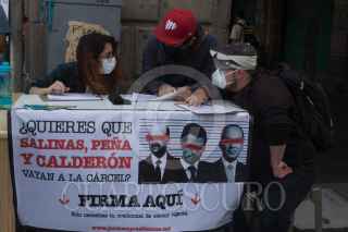 CIUDAD DE MÉXICO, 30AGOSTO2020.- Un grupo de jovenes estudiantes recabaron firmas de la ciudadanía para enjuiciar a los expresidentes Carlos Salinas de Gortari, Enrique Peña Nieto y Felipe Cálderón Hinojosa por acto de corrupción que ejercieron durante el gobierno de sus sexenios. Los capitalinos que se interesan sólo firman con su credencial de elector. Los jovenes informaron que tienen hasta el 13 de septiembre para presentar alrededor de 2 millones de firmas en las instalaciones del Instituto Nacional Electoral (INE) para que las valide y después en el Senado. FOTO: GRACIELA LÓPEZ /CUARTOSCURO.COM