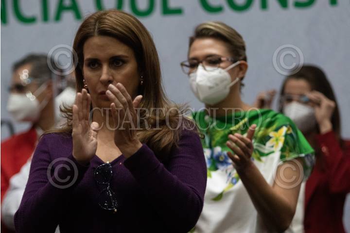 CIUDAD DE MÉXICO, 30AGOSTO2020.- Alejandro Moreno Cárdenas, presidente del PRI, y Alma Viggiano, secretaria general del partido, presidieron los trabajos de la 5ta Reunión Plenaria de los Diputados Federales, la cual se llevó a cabo en la su sede nacional. FOTO: MOISÉS PABLO/CUARTOSCURO.COM