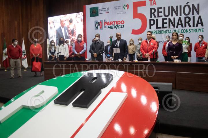 CIUDAD DE MÉXICO, 30AGOSTO2020.- Alejandro Moreno Cárdenas, presidente del PRI, y Alma Viggiano, secretaria general del partido, presidieron los trabajos de la 5ta Reunión Plenaria de los Diputados Federales, la cual se llevó a cabo en la su sede nacional. FOTO: MOISÉS PABLO/CUARTOSCURO.COM