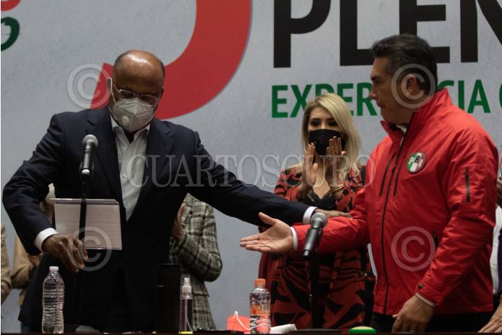 CIUDAD DE MÉXICO, 30AGOSTO2020.- Alejandro Moreno Cárdenas, presidente del PRI, y Alma Viggiano, secretaria general del partido, presidieron los trabajos de la 5ta Reunión Plenaria de los Diputados Federales, la cual se llevó a cabo en la su sede nacional. FOTO: MOISÉS PABLO/CUARTOSCURO.COM