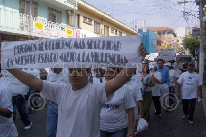 CHILPANCINGO, GUERRERO 01MAYO2006.- Un grupo de jovenes se manifestaron frente a la franquicia estadounidense Kentucky Fried Chicken y Pizza Hut en apoyo a los migrantes que laboran en Estados Unidos de Norteamérica como parte del boicot que se lleva a cabo de forma simultánea en México y E. U. A. FOTO: Oscar Alvarado/CUARTOSCURO.COM