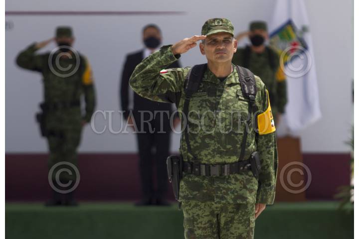 APODACA, NUEVO LEÓN, 01SEPTIEMBRE2020.- Dentro de las instalaciones del VII Zona Mlitar, se llevó a cabo la toma de posesión y protesta de bandera al General de Brigada D.E.M. Carlos Arturo Pancardo Escudero Comandante de la IV Región Militar, la cual incluye los estados de Nuevo León, Tamaulipas y San Luis Potosí. FOTO: GABRIELA PÉREZ MONTIEL / CUARTOSCURO.COM