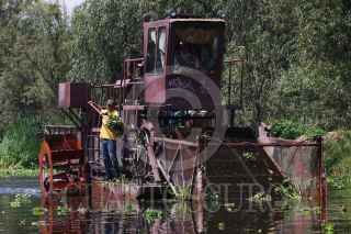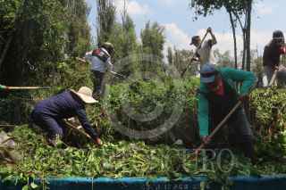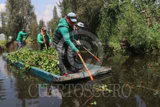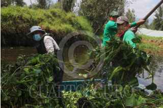 CIUDAD DE MÉXICO, 01SEPTIEMBRE2020.- A partir de ayer arrancó la Mega jornada de limpieza en los canales de Xochimilco. La meta es limpiar más de 100 kilómetros de canales y apantles, de los 186 kilómetros que conforman la zona chinamprera. Alrededor de 160 funcionarios comenzaron a reforzar las acciones de limpieza como trabajos de extracción de residuos orgánicos e inorgánicos y la maleza acuática debido a la temporada de lluvias. Se tiene prevista la extracción de más de 60 toneladas por día hasta el 5 de septiembre. Los embarcaderos base en dónde se realizará el trabajo es en Fernando Celada, Puente de Urrutia y Cuemanco, desarrollarán actividades con herramientas como: guadañas, bieldos, palas, machetes y azadones para deshierbar las riberas de las chinampas, así como para extraer maleza acuática. FOTO: GRACIELA LÓPEZ /CUARTOSCURO.COM