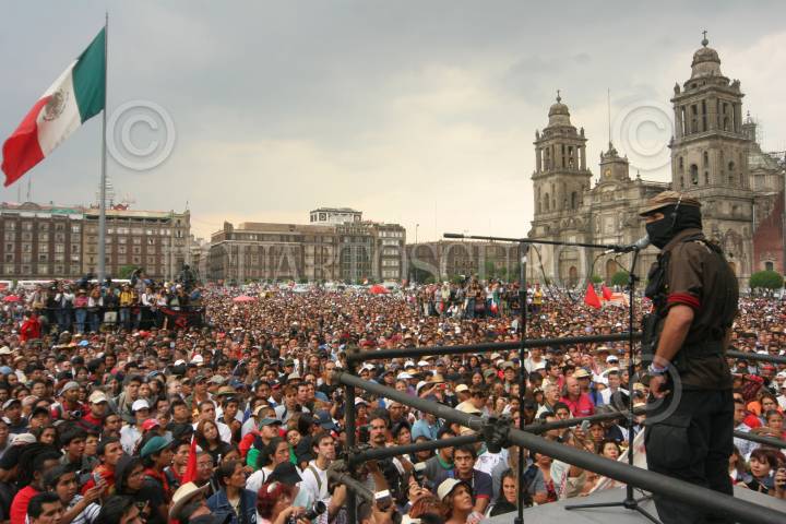 MÉXICO, D.F. 01MAYO2006.- El subcomandante insurgente Marcos, delegado Zero para la otra campaña, a su llegada al mítin realizado en el zócalo de la capital del país donde miles se simpatizantes asistieron. FOTO: Moysés Zúñiga/CUARTOSCURO.COM