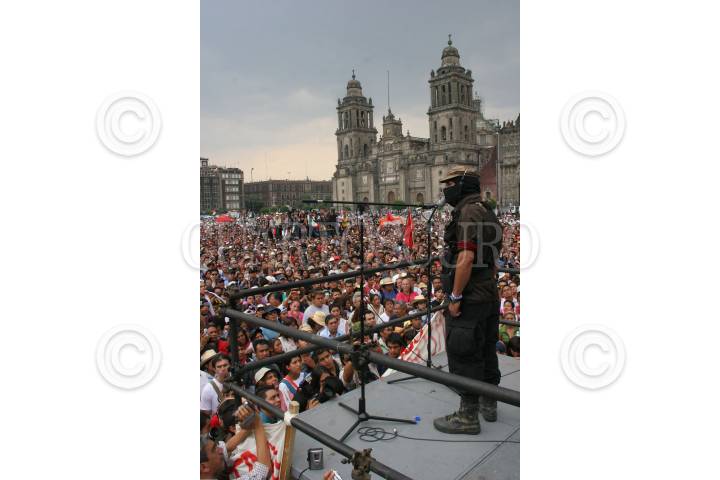MÉXICO, D.F. 01MAYO2006.- El subcomandante insurgente Marcos, delegado Zero para la otra campaña, a su llegada al mítin realizado en el zócalo de la capital del país donde miles se simpatizantes asistieron. FOTO: Moysés Zúñiga/CUARTOSCURO.COM