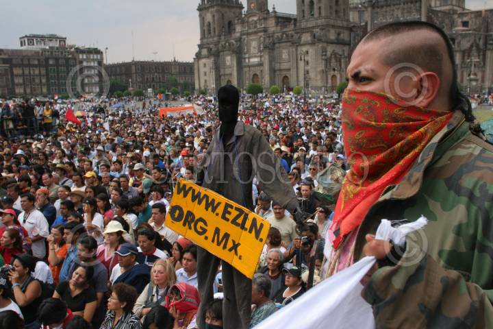 MÉXICO, D.F. 01MAYO2006.- El subcomandante insurgente Marcos, delegado Zero para la otra campaña, a su llegada al mítin realizado en el zócalo de la capital del país donde miles se simpatizantes asistieron. FOTO: Moysés Zúñiga/CUARTOSCURO.COM