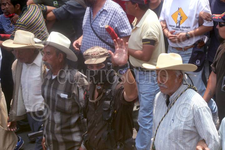 MÉXICO, D.F. 01MAYO2006.- El subcomandante insurgente Marcos, delegado Zero para la otra campaña, a su llegada al mítin realizado en el zócalo de la capital del país donde miles se simpatizantes asistieron. FOTO: Moysés Zúñiga/CUARTOSCURO.COM