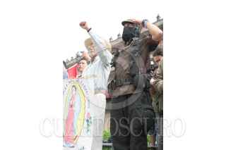MÉXICO D.F. 01MAYO2006.- El Delegado Zero, Subcomandante Marcos, por la Otra Campaña, durate la protesta en frente del Palacio Nacinal, en apoyo a los migrantes, durante el día del Trabajo. FOTO: Guillermo Perea/CUARTOSCURO.COM