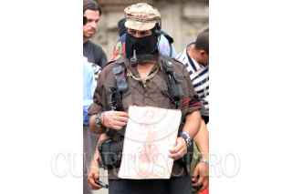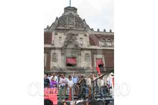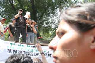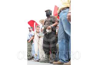 MÉXICO D.F. 01MAYO2006.- El Delegado Zero, Subcomandante Marcos, por la Otra Campaña, durate la protesta en frente del Palacio Nacinal, en apoyo a los migrantes, durante el día del Trabajo. FOTO: Guillermo Perea/CUARTOSCURO.COM