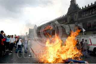 MÉXICO D.F. 01 MAYO 2006.- Fueron quemadas algunas figuras alusivas a Estados Unidos durante el mitin "Otro primero de Mayo", que encabezó el Delegado Zero en la plancha del Zócalo. FOTO: Cristina Aguilar / CUARTOSCURO.COM