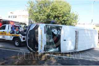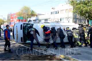 CIUDAD DE MÉXICO, 03SEPTIEMBRE2020.- Una ambulancia chocó contra un auto y un taxi para metros má adelante terminar volcándose, el saldo del percance fue de tres socorristas lesionados y los conductores de los otros dos vehículos involucrados. Los hechos en avenida Guerrero y calle de Júpiter, colonia Guerrero. FOTO: ARMANDO MONROY/CUARTOSCURO.COM