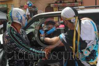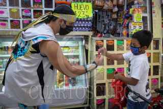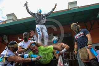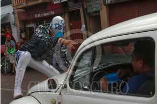 CIUDAD DE MÉXICO, 02SEPTIEMBRE2020.- Luchadores, miembros del proyecto "Chinampaluchas" entregaron cubrebocas a capitalinos que no lo utilizan con el propósito de evitar mas contagios de Covid-19. Durante su recorrido entregaron muñecos de luchadores a niños que si lo utilizan como muestra de agradecimiento. El acto se realizó en el Centro y Mercado de Xochimilco. FOTO: GRACIELA LÓPEZ /CUARTOSCURO.COM