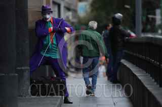 CIUDAD DE MÉXICO, 04SEPTIEMBRE2020.- Un hombre personificado con un cubrebocas como el Guasón camina por las calle del Centro Histórico en tiempos de pandemia por COVID-19. FOTO: GALO CAÑAS /CUARTOSCURO.COM
