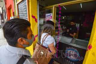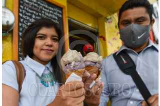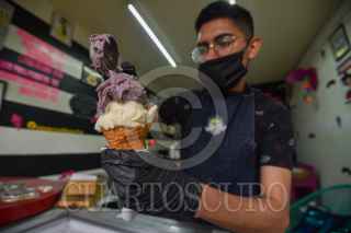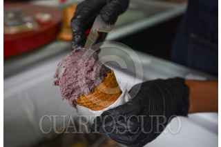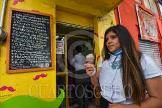 TOLUCA, ESTADO DE MÉXICO, 04SEPTIEMBRE2020.- La Heladeria El Bigote Frío ubicada en Toluca como una forma de unirse a los festejos de las fiestas patrias tienen dos nuevos sabores que son el helado de maíz morado y de pinole, de los productores mexiquenses Occentlalli, está heladería ha buscado diversos medios para continuar atendiendo a su clientela siempre siguiendo todas las medidas higiénicas ante la contingencia por COVID-19, estos nuevos sabores estarán durante todo el mes de septiembre, y a unos días de haberlos puesto en sus refrigeradores los clientes llegan buscando estos nuevos sabores. FOTO: CRISANTA ESPINOSA AGUILAR /CUARTOSCURO.COM